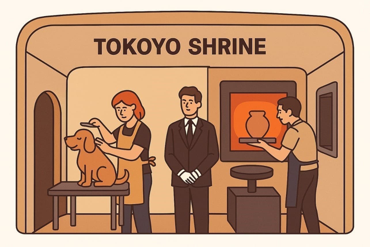 祠車は、ペットのケア・焼却・記憶保存・陶芸焼成・紙芝居生成を一体化した移動型祈り空間です。